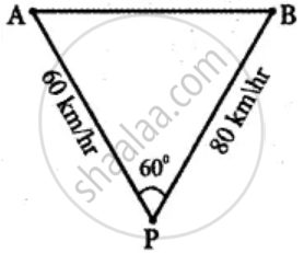 Two vehicles leave the same place P at the same time moving along two different roads. One vehicle moves at an average speed of 60 km/hr and the other vehicle moves at an average speed of 80 km/hr. After half an hour the vehicle reaches destinations A and B. If AB subtends 60° at the initial point P, then find AB