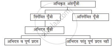 एक कंपनी की शेयर पूँजी का मुख्य श्रेणियों में विभाजन आरेखीय रूप से नीचे समझाया गया है।
