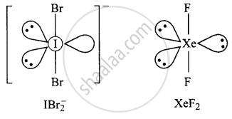 \[\ce{IBr^-_2}\], XeF2 से समइलेक्ट्रॉनिक है। दोनों रेखीय हैं।