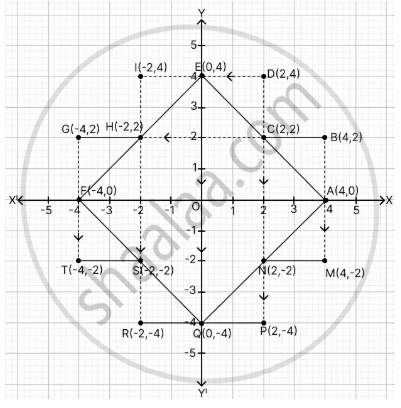 - Join the points A, B, C, D, E, I, H, G and F in order. Reflect the figure ABCDEIHGF on the x-axis and name it as AMNPQRSTF.