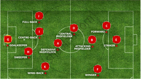 - Fullbacks: As shown by players H, I and J.