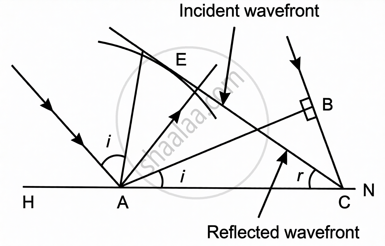Using Huygen’s wave theory and a labelled diagram, show that angle of reflection (r) is equal to angle of incidence (i).