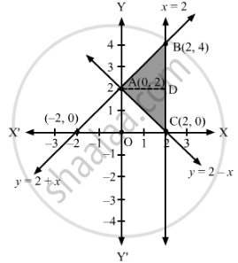 Solving (1), (2) and (3) in pairs, we obtain the coordinates of the point of intersection as A(0, 2), B(2, 4) and C(2, 0).