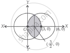 ⇒ Area = `2{- (9sqrt(3))/8 - 9/2 xx π/6 + 9/2 xx π/2 + 9/2 xx π/2 - (9sqrt(3))/8 - 9/2 xx π/6}`