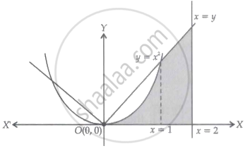 Area of the shaded region = `int_0^1 x^2dx + int_1^2 xdx`