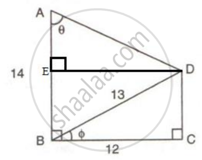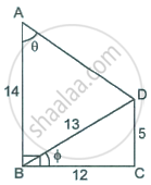 Given: From the figure: AB = 14, BC = 12, CD = 5, BD = 13. Angle at B is φ (between BC and BD); angle at A is θ between AB and AD.