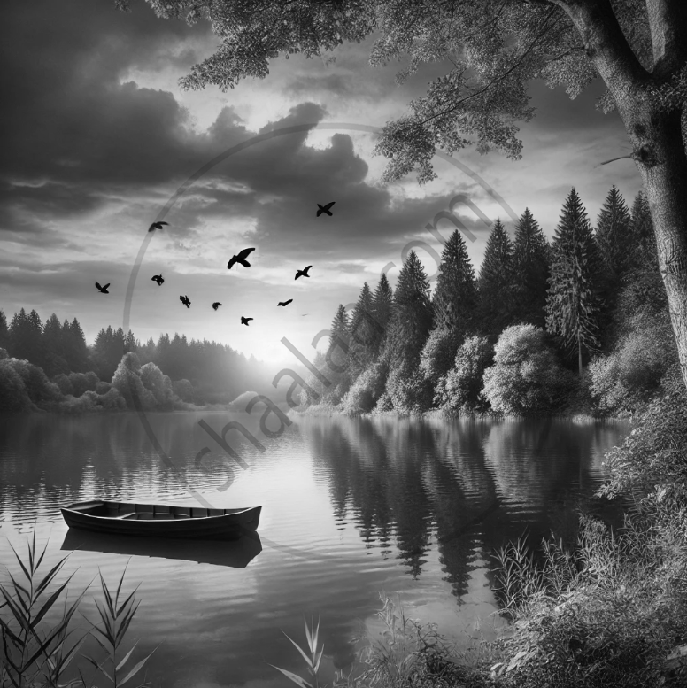 मैंने यह चित्र एक सुंदर झील का बनाया है। इसमें झील के किनारे बड़े-बड़े हरे पेड़ हैं, और पानी में उनका प्रतिबिंब दिख रहा है। सूरज ढल रहा है, जिससे आसमान नारंगी और गुलाबी रंगों में नहाया हुआ है। कुछ पक्षी आकाश में उड़ रहे हैं, और एक छोटी नाव झील में तैर रही है।