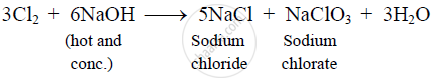 Chlorine reacts with hot and conc. NaOH to produce sodium chlorate and sodium chloride.