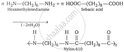 Nylon-610: It is a polymer of haxamethylenediamine and sebacic acid. It is prepared by the condensation polymerisation of hexamethylenediamine and sebacic acid.