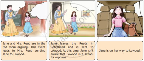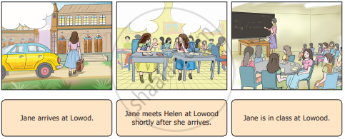 Look at the story board. Read the captions given under each frame. Fill the bubbles and complete the story board.