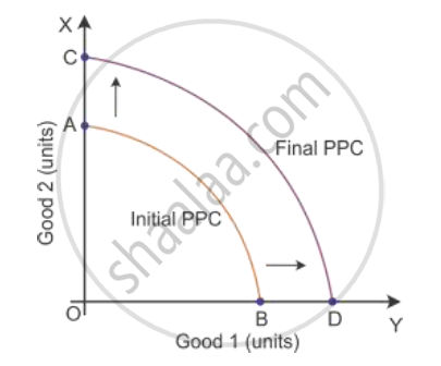 A large-scale inflow of foreign capital will lead to an increase in the availability of resources, thereby PPC will shift to the right from AB to CD.