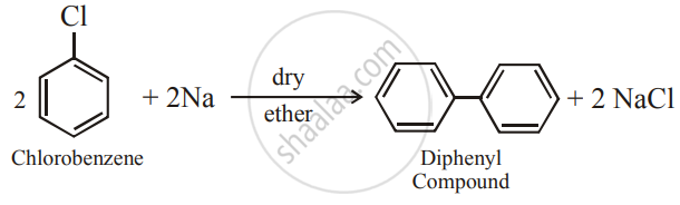 Chlorobenzene is heated with sodium metal in presence of dry ether gives diphenyl compound.