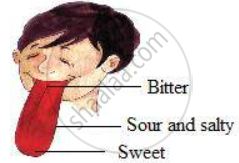 Which taste could be made out on which part of the tongue? Mark these parts in the picture given.