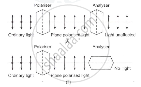 Detection of plane polarised light: Naked eyes or the polarizer alone cannot make the distinction between unpolarised light and plane polarised light. To analyse the nature of light, another crystal (analyser) is used. The tourmaline crystal is used to produce plane polarised light.