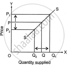 In the diagram, quantity supplied is measured on the x-axis and price along the y-axis. We find that at price OP, quantity supplied is OQ. At a higher price of OP1, the firm is willing to sell OP1 quantity of the good. And at a price lower than OP say OP2, the firm is willing to supply only lesser quantity i.e. OQ2.