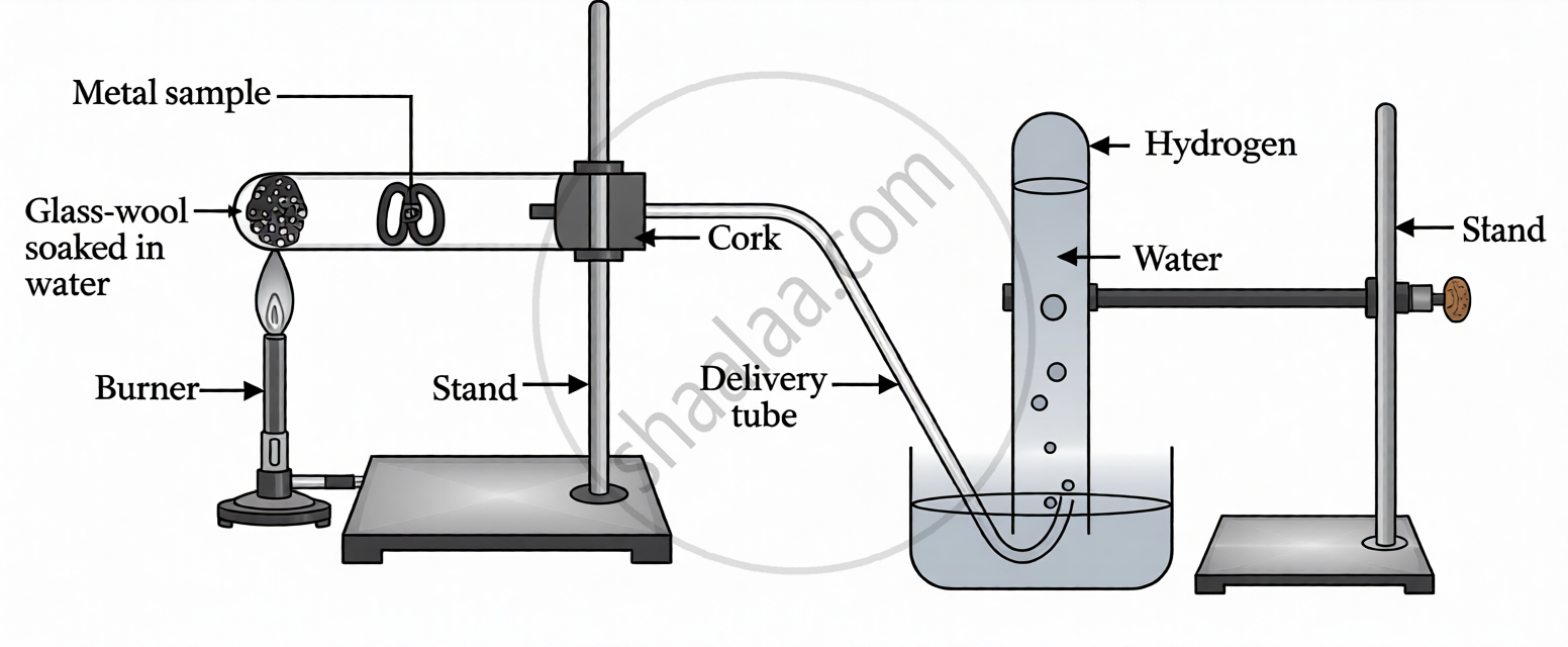 With the help of a labelled diagram show the experimental set up of action of steam on a metal.