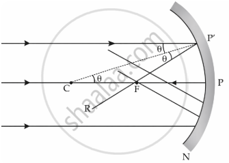 A ray of light BP' travelling parallel to the principal axis PC is incident on a spherical mirror PP'. It reflects along P'R.