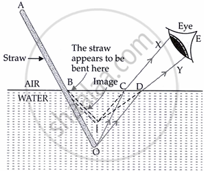 With the help of a ray diagram, show that a straw appears bent when it is partly dipped in water and explain it.
