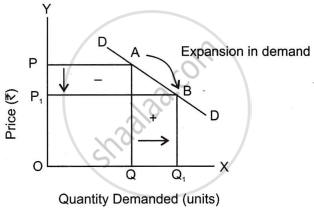 Diagrammatic Explanation: In the diagram when price falls from OP to OP1, demand expands from OQ to OQ1.