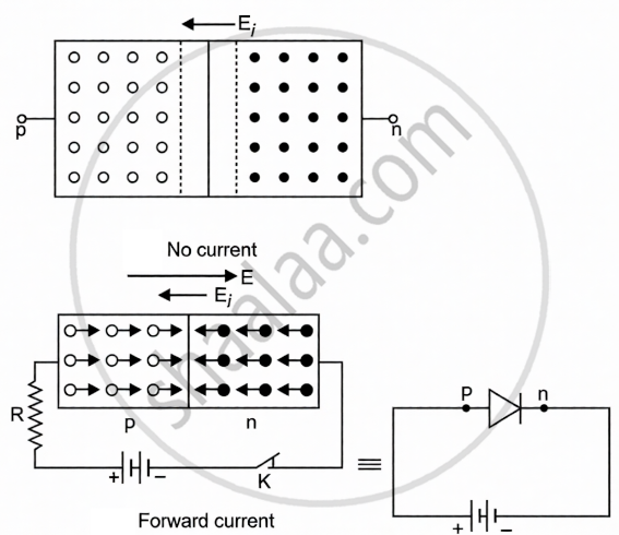 With the help of circuit diagrams, briefly explain the forward biasing of a p-n junction diode.
