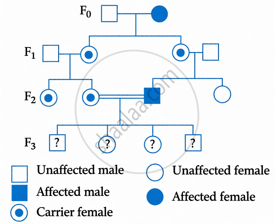 With the help of given pedigree, find out the probability for the birth of a child having no disease and being a carrier (has the disease mutation in one allele of the gene) in F3 generation.