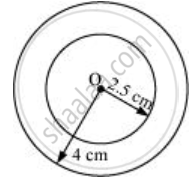 With the same centre O, draw two circles of radii 4 cm and 2.5 cm.
