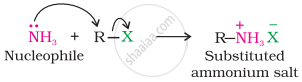 The carbon-halogen bond in alkyl or benzyl halides can be easily cleaved by a nucleophile. Hence, an alkyl or benzyl halide on reaction with an ethanolic solution of ammonia undergoes a nucleophilic substitution reaction in which the halogen atom is replaced by an amino (–NH2) group. This process of cleavage of the C–X bond by an ammonia molecule is known as ammonolysis. The reaction is carried out in a sealed tube at 373 K. The primary amine thus obtained behaves as a nucleophile and can further react with alkyl halide to form secondary and tertiary amines and finally quaternary ammonium salt.