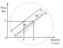 Increase in supply: There is an increase in supply due to the favourable changes in the determinants other than the price of the good. It is represented by a parallel rightward shift of the supply curve.