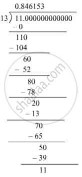 `therefore 11/13 = 0.846153846153... = 0.bar846153`