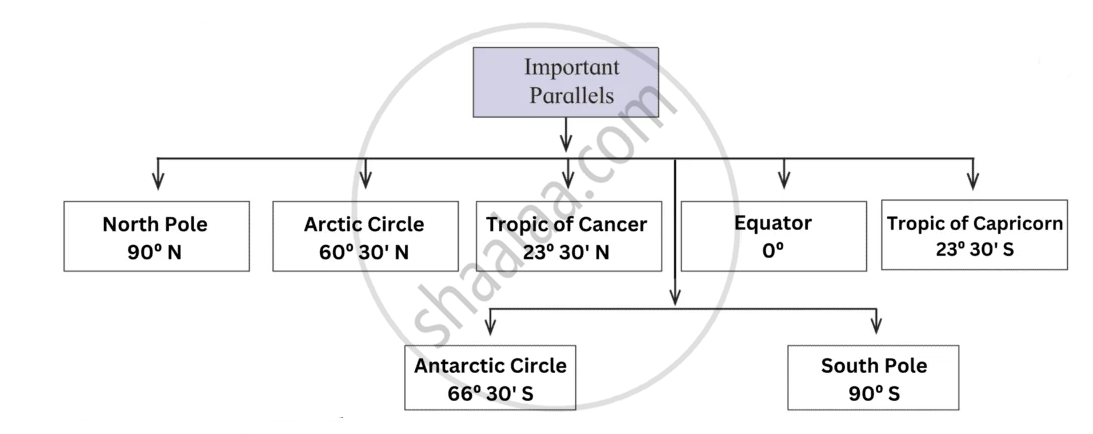 Draw important parallels and meridians in the figure given below and label them with appropriate angular measures. (Use the protractor.)