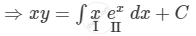 \[ \Rightarrow xy = x\int e^x dx - \int\left( \frac{d}{dx}\left( x \right)\int e^x dx \right)dx + C\]