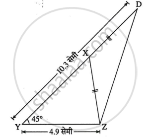 रेखाखंड YZ के बिंदु Y से 45° का कोण बनाने वाले किरण पर बिंदु D इस प्रकार लें कि YD = XY + XZ = 10.3 सेमी