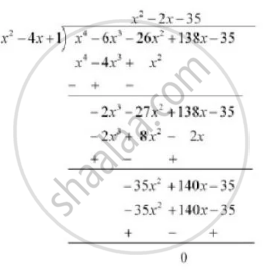 दिए गए बहुपद के शेष शून्य ज्ञात करने के लिए, हम x4 - 6x3 - 26x2 + 138x - 35 को x2 - 4x + 1 से गोता लगाकर भागफल ज्ञात करेंगे।