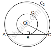 मान लीजिए O दो संकेंद्रित वृत्तों C1 और C2 का केंद्र है, जिनकी त्रिज्याएँ r1 = 4 cm और r2 = 5 cm हैं।