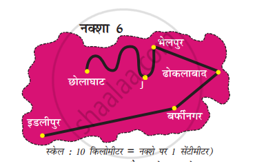 तो, 0.5 सेमी नक्शा दूरी = 5 किमी वास्तविक दूरी ढोकलाबाद और छोलाघाट से जलेबीपुर की वास्तविक दूरी = 35 किमी