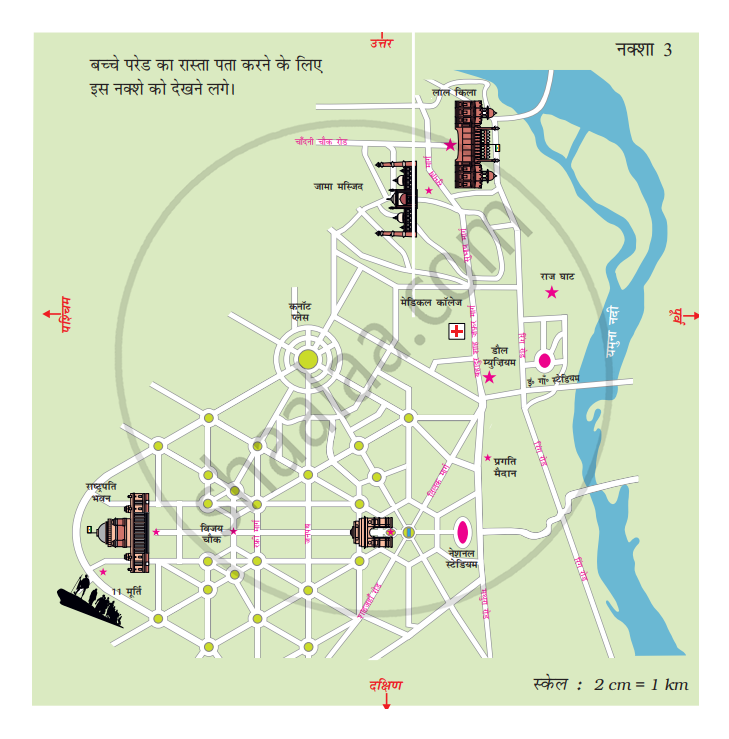 - नक्शे पर 1 cm = ज़मीन पर 1 किलोमीटर