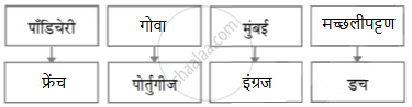युरोपीय सत्ता व त्यांची भारतातील महत्त्वाची वसाहती लिहून संकल्पना चित्र पूर्ण करा: