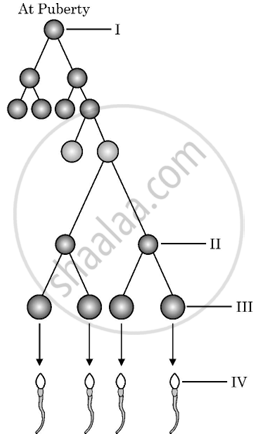 I - spermatogonia, II - sec. spermatocyte, III - spermatid, IV - spermatozoa