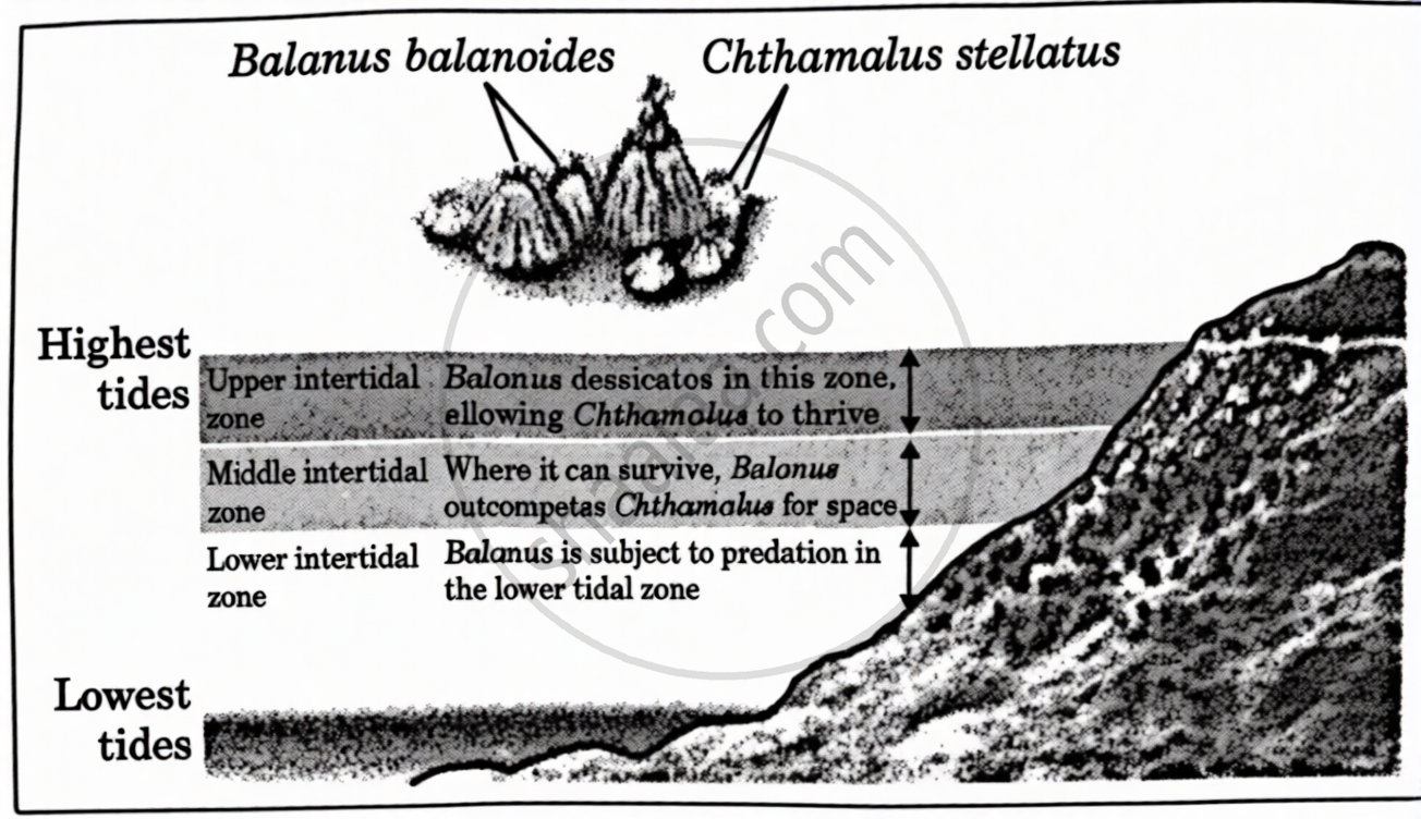 The diagram below shows the distribution of two barnacle species, Chthamalus and Balanus on a rocky sea shore.