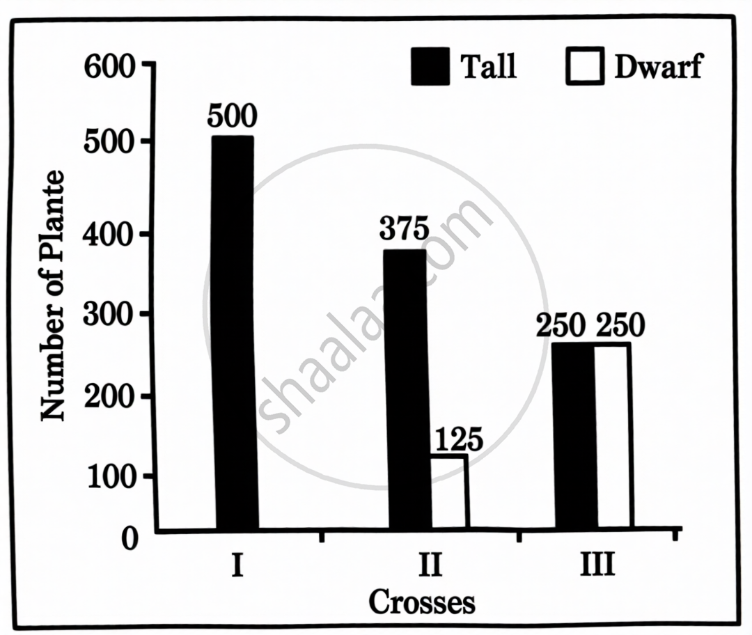 A student performed some crosses in plants and represented the result in the form of bar graphs as shown below. Each graph displays the phenotypic proportion of the progeny. Study the graphs and answer the questions: