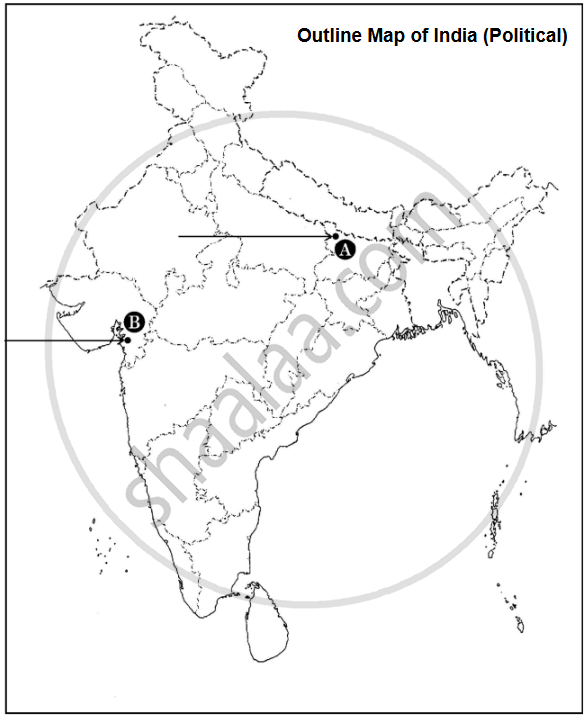 2. On the same map, two places have been marked as A and B as the centres of the Indian National movement. Identify them and write their names on the lines drawn near them.