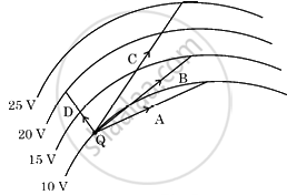 In the figure curved lines represent equipotential surfaces. A charge Q is moved along different paths A, B, C and D. The work done on the charge will be maximum along the path ______.
