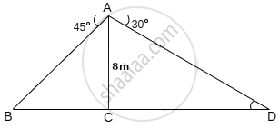 From a point on a bridge across a river, the angles of depression of the banks on opposite sides of the river are 30° and 45°. If the bridge is at a height of 8 m from the banks, then find the width of the river.