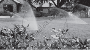 To keep the lawn green and cool, Sadhna uses water sprinklers which rotate in circular shape and cover a particular area.