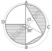 O is the centre of the circle. If AC = 28 cm, BC = 21 cm, ∠BOD = 90° and ∠BOC = 30°, then find the area of the shaded region given in the figure.
