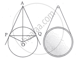The picture given below shows a circular mirror hanging on the wall with a cord. The diagram represents the mirror as a circle with centre O. AP and AQ are tangents to the circle at P and Q, respectively such that AP = 30 cm and ∠PAQ = 60°.