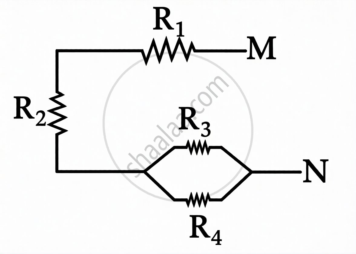 For the combination of resistors shown in the following figure, find the equivalent resistance between M & N.