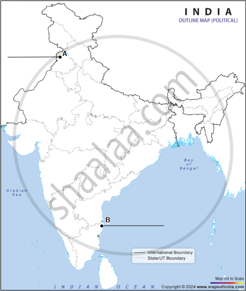 Two places (A) and (B) have been marked on the given political outline map of India. Identify them based on the information given below and write their correct names on the lines marked on the map near them: