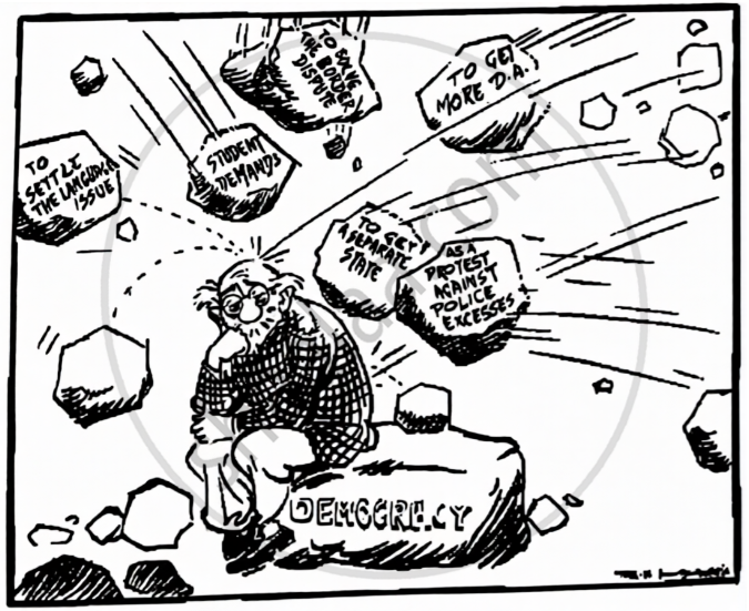 Reason (R): The distrust between the Sinhala and Tamil communities turned into widespread conflict in Sri Lanka.