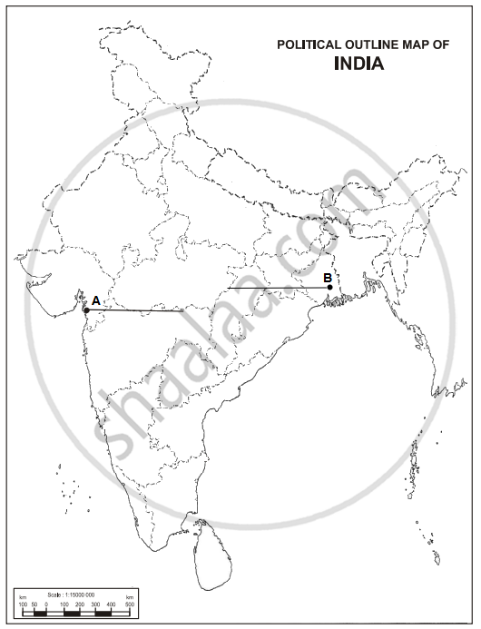 Two places ‘A’ and ‘B’ have been marked on the given political outline map of India. Identify them with the help of the following information and write their correct names on the lines drawn near them: